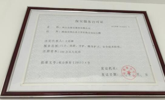 鳳臺(tái)保安服務(wù)有限公司成立于2007年,是經(jīng)鳳臺(tái)縣公安局行政許可的經(jīng)營(yíng)企業(yè),注冊(cè)資金1000萬元,具有國(guó)企背景(安徽州來控股有限公司),更是一家朝氣蓬勃的年輕企業(yè)。公司主營(yíng)勞務(wù)派遣、保安服務(wù)、武裝押運(yùn)等。 >>了解更多